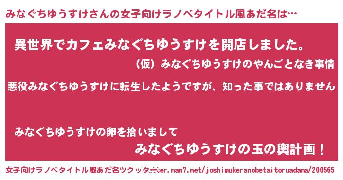 | 男性向けラノベタイトル風あだ名 | 『この素晴らしい世界にみなぐちゆうすけを!』 |
