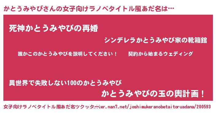 | 胡散臭い通販商品みたいなあだ名 | 『億万長者になれる水晶球…その名も「かとうみやび」』 |