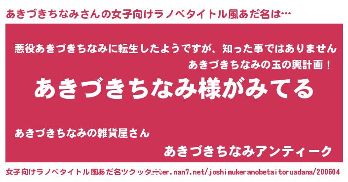 | 意味不明あだ名 | 『とにかく怪しいあきづきちなみ』 |