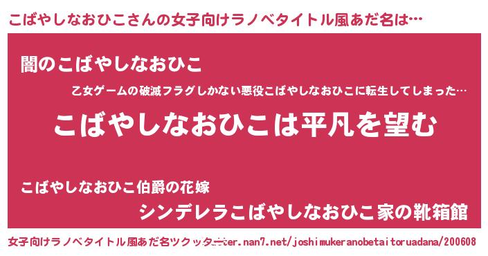 | 胡散臭い通販商品みたいなあだ名 | 『信頼と実績のサプリメント…その名も「こばやしなおひこ」』 |