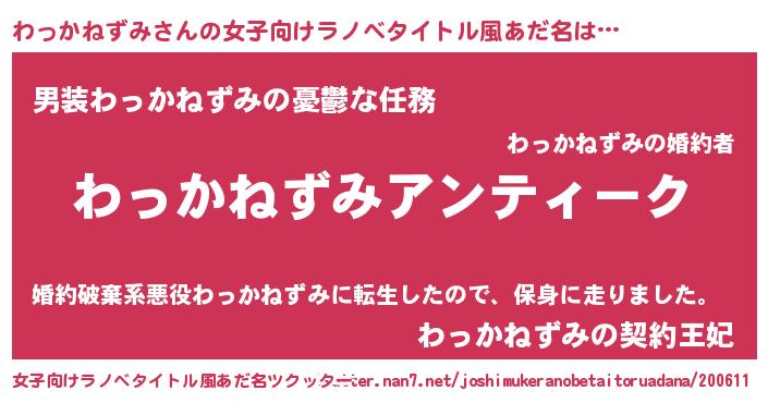 | 男性向けラノベタイトル風あだ名 | 『魔法科高校のわっかねずみ』 |