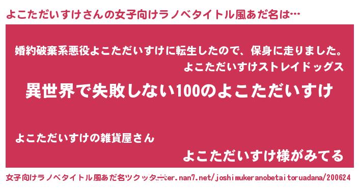 | 男性向けラノベタイトル風あだ名 | 『よこただいすけという概念が存在しない退屈な世界 』 |