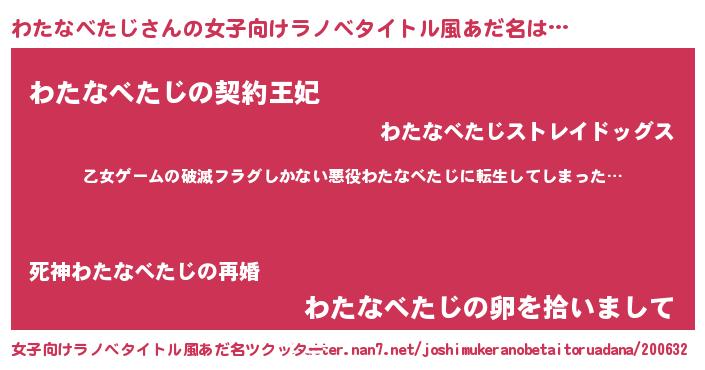 | 意味不明あだ名 | 『住所不定無職わたなべたじ(8歳)』 |