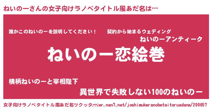 | ヘコむあだ名 | 『ねいにゅー』『ねいのー(小並感)』 |