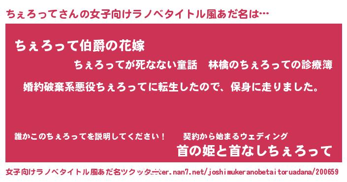 | 男性向けラノベタイトル風あだ名 | 『チェロッテスレイヤー』 |