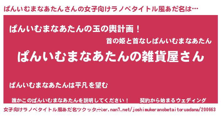 | ファンタジー風あだ名 | 『エターナルパンイムマナアタンー』 |