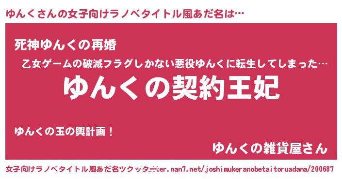 | 胡散臭い通販商品みたいなあだ名 | 『来世でも幸せになれる健康食品…その名も「ゆんく」』 |