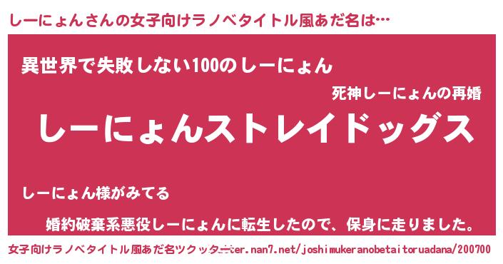 | 意味不明あだ名 | 『自称しーにょん』『永久保存しーにょん』 |