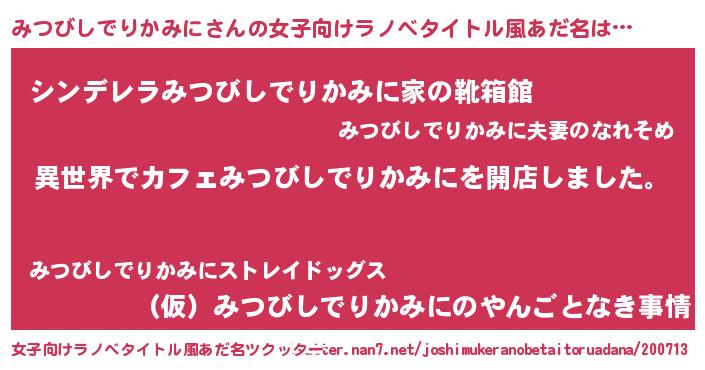 | 胡散臭い通販商品みたいなあだ名 | 『前代未聞の健康食品…その名も「みつびしでりかみに」』 |