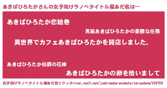 | 意味不明あだ名 | 『永久保存あきばひろたか』 |