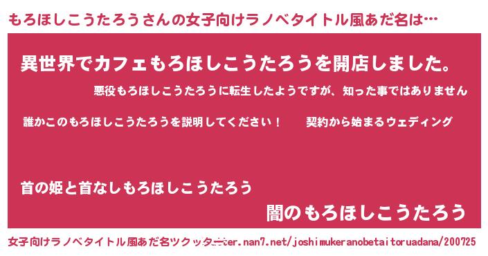 | ヘコむあだ名 | 『もろにー』『もろほしこうたろう(苦笑)』 |