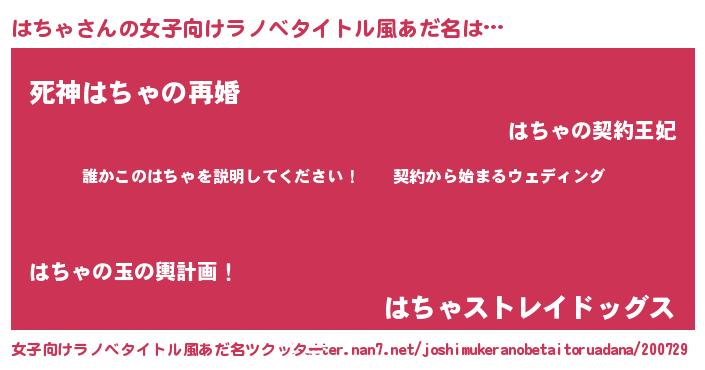 | 胡散臭い通販商品みたいなあだ名 | 『億万長者になれる霊験あらたかなお札…その名も「はちゃ」』 |