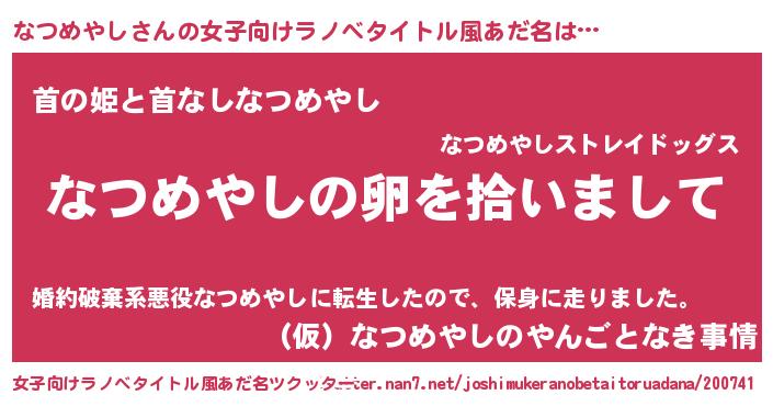 | ピコ太郎風あだ名 | 『ナツ三郎』『ナコ十郎』『ピコナ郎』 |