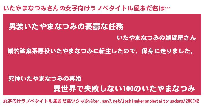 | 男性向けラノベタイトル風あだ名 | 『転生したらいたやまなつみだった件』 |