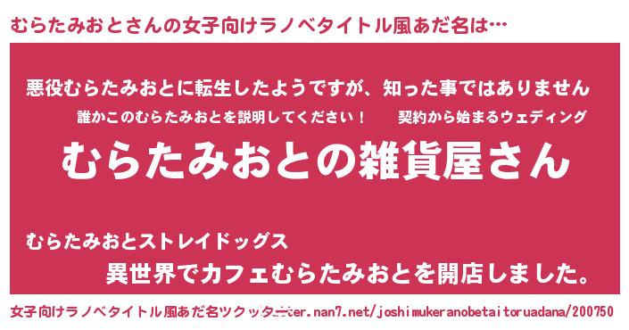 | ファンタジー風あだ名 | 『エターナルムラタミオトー』 |