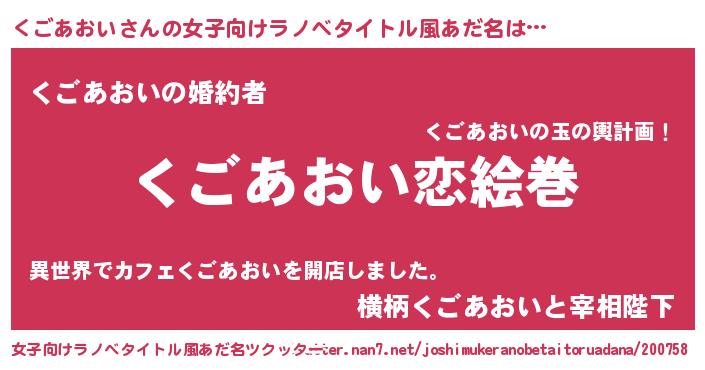 | 男性向けラノベタイトル風あだ名 | 『ノーゲーム・ノークゴアオイ』 |