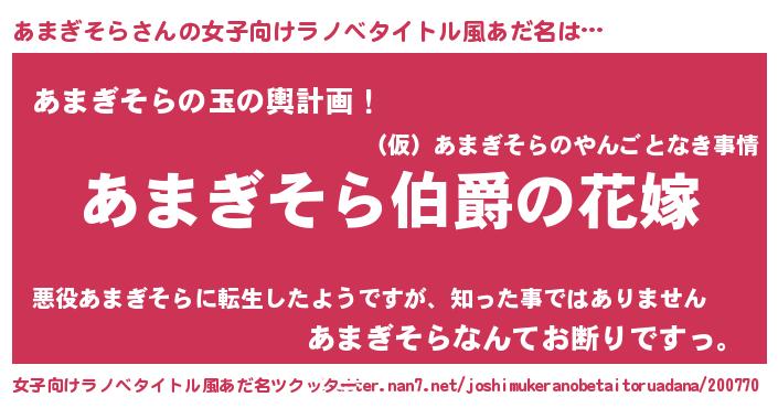 | 男性向けラノベタイトル風あだ名 | 『やはりあまぎそらの青春ラブコメはまちがっている 』 |
