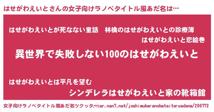 | 男性向けラノベタイトル風あだ名 | 『はせがわえいとという概念が存在しない退屈な世界 』 |