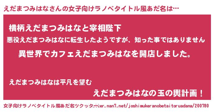 | 胡散臭い通販商品みたいなあだ名 | 『前代未聞の水素水…その名も「えだまつみはな」』 |