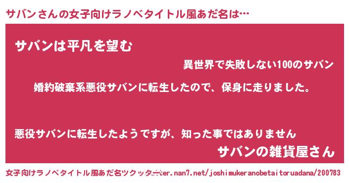 | 胡散臭い通販商品みたいなあだ名 | 『信頼と実績のサプリメント…その名も「サバン」』 |