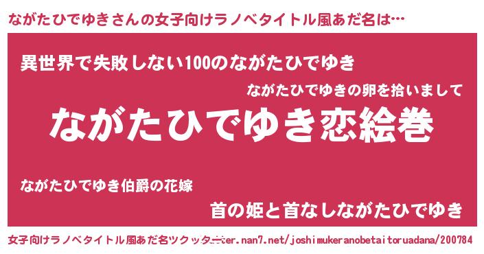 | ヘコむあだ名 | 『ながたひでゆき(笑)』『ながお』 |