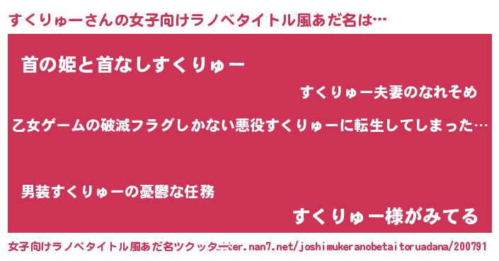 | 意味不明あだ名 | 『住所不定無職すくりゅー(39歳)』 |