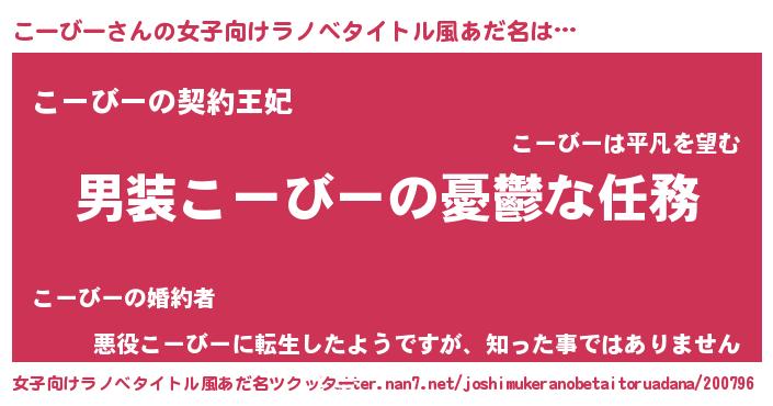 | 胡散臭い通販商品みたいなあだ名 | 『前代未聞の水素水…その名も「こーびー」』 |