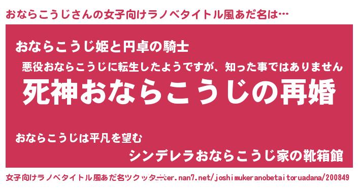 | 男性向けラノベタイトル風あだ名 | 『ノーゲーム・ノーオナラコウジ』 |