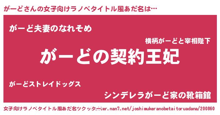 | 意味不明あだ名 | 『永久保存がーど』『自称がーど』 |