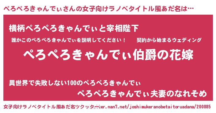 | 男性向けラノベタイトル風あだ名 | 『うちの娘の為ならば、俺はもしかしたらぺろぺろきゃんでぃも倒せるかもしれない。』 |