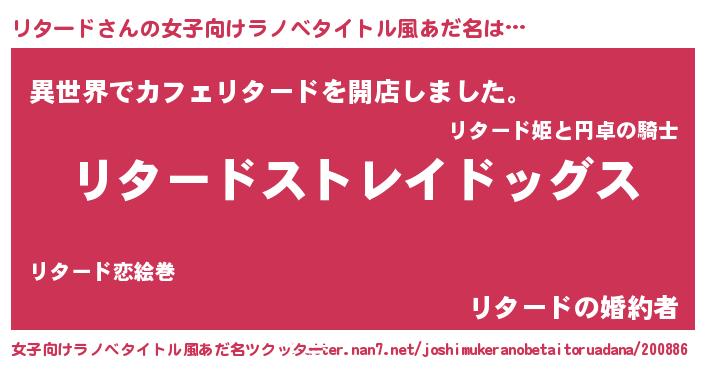 | 意味不明あだ名 | 『自称リタード』『永久保存リタード』 |