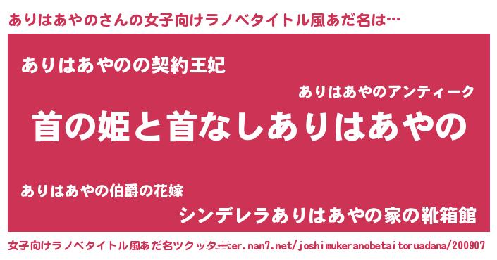 | 男性向けラノベタイトル風あだ名 | 『はたらくありはあやのさま!』 |