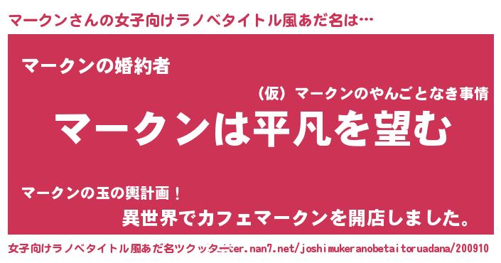 | 男性向けラノベタイトル風あだ名 | 『ダンジョンにマークンを求めるのは間違っているだろうか』 |