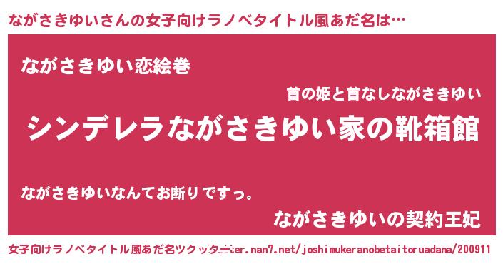 | 男性向けラノベタイトル風あだ名 | 『冴えないながさきゆいの育てかた』 |