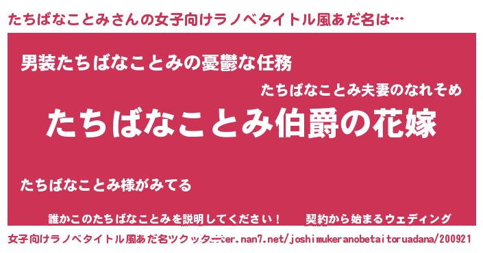 | 男性向けラノベタイトル風あだ名 | 『やはりたちばなことみの青春ラブコメはまちがっている 』 |