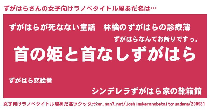 | 男性向けラノベタイトル風あだ名 | 『はたらくずがはらさま!』 |