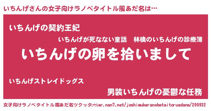 | 男性向けラノベタイトル風あだ名 | 『ダンジョンにいちんげを求めるのは間違っているだろうか』 |