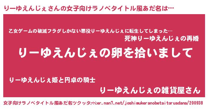 | 意味不明あだ名 | 『とにかく怪しいりーゆえんじぇ』 |