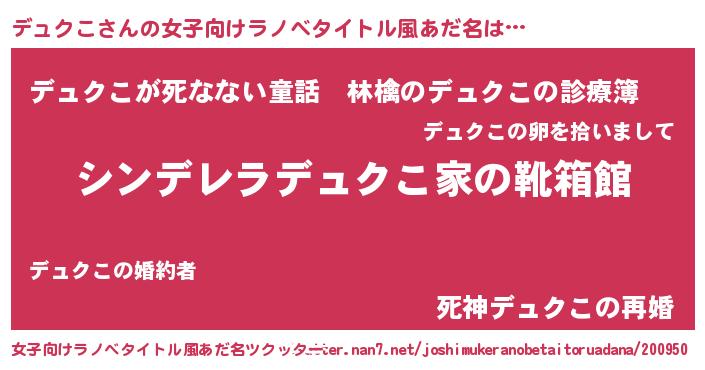 | 胡散臭い通販商品みたいなあだ名 | 『世界中を虜にした100年もののヴィンテージワイン…その名も「デュクこ」』 |