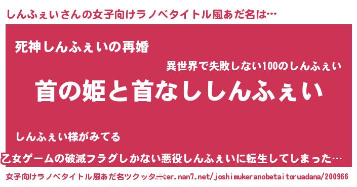 | ヘコむあだ名 | 『しんふぇい(苦笑)』『しん太郎』 |
