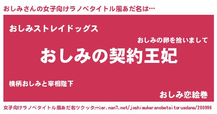 | 意味不明あだ名 | 『永久保存おしみ』『自称おしみ』 |