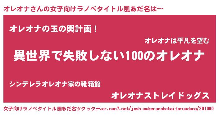 | 意味不明あだ名 | 『永久保存オレオナ』『自称オレオナ』 |
