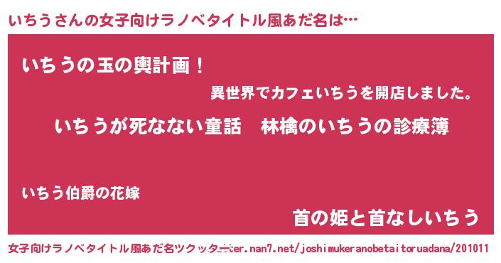 | 男性向けラノベタイトル風あだ名 | 『魔弾の王といちう』 |