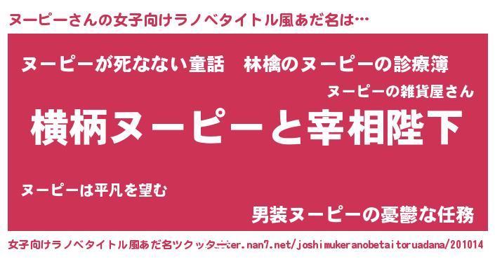 | 男性向けラノベタイトル風あだ名 | 『ヌーピーに滅ぼされるだけの簡単なお仕事です』 |