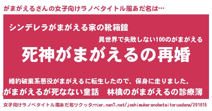 | 男性向けラノベタイトル風あだ名 | 『ノーゲーム・ノーガマガエル』 |