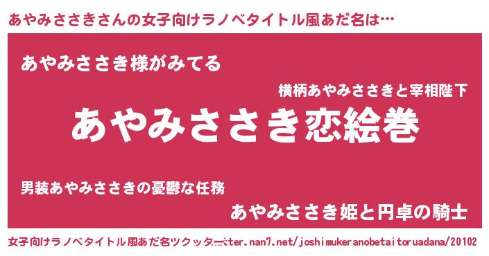 | ピコ太郎風あだ名 | 『アア太郎』『アヤ四郎』『アコ次郎』 |