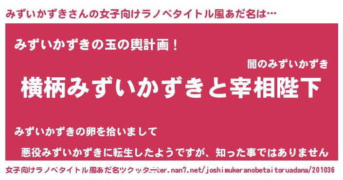 | 男性向けラノベタイトル風あだ名 | 『みずいかずきに滅ぼされるだけの簡単なお仕事です』 |