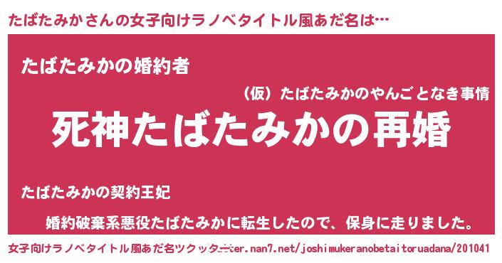 | 男性向けラノベタイトル風あだ名 | 『ノーゲーム・ノータバタミカ』 |