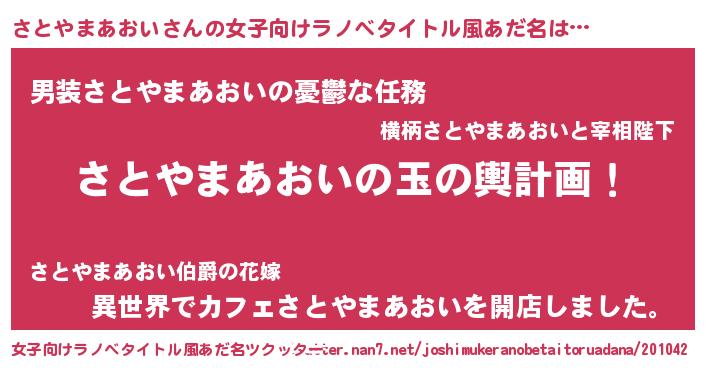 | ヘコむあだ名 | 『さとやまあおい(爆)』『酢こんぶ』 |