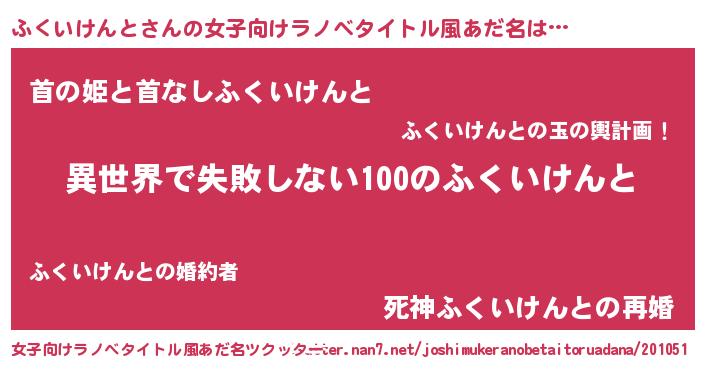 | 男性向けラノベタイトル風あだ名 | 『ふくいけんとという概念が存在しない退屈な世界 』 |
